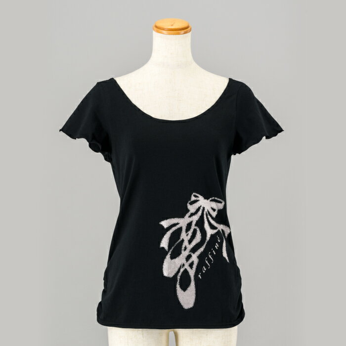 raffine ラフィーネ / NAWA バレエウェア 日本製 送料無料 トウシューズプリントTシャツ レディース バレエ ダンス Tシャツ M ブラック/オフホワイト/ピンク