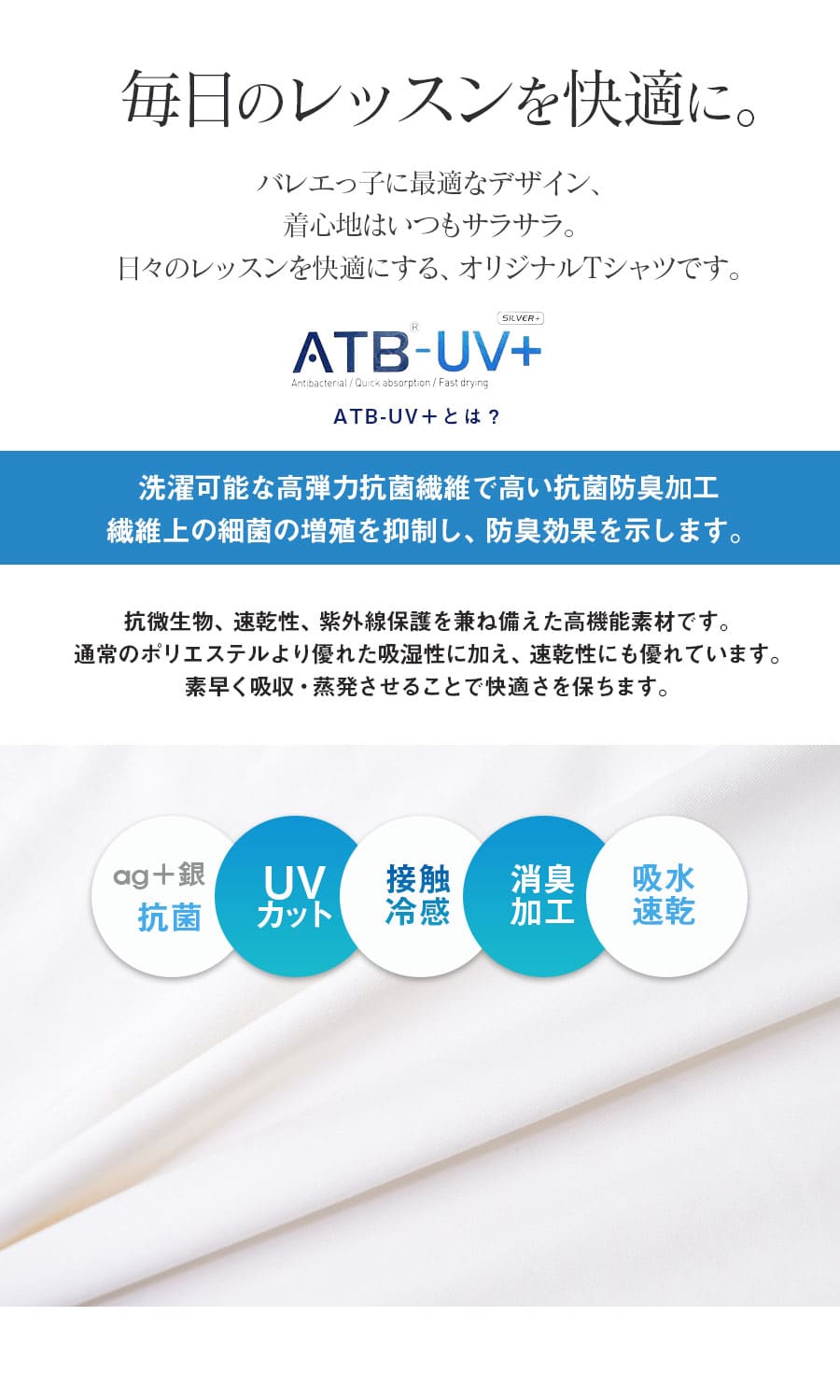 <abbyバレエTシャツ>接触冷感&吸水速乾「ATB-UV+」“Be the only one”快適BalletTee UVカット・抗菌消臭レッスンに最適な機能素材を使ったサラサラ快適なバレエTシャツ 2枚までメール便可 バレエ バレエレッスン バレエ教室