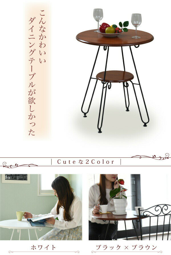 ヨーロッパ風 ロートアイアン 家具 カフェテーブル 丸 テーブル 幅60cm 高さ70 棚付き アイアン 脚 アンティーク風