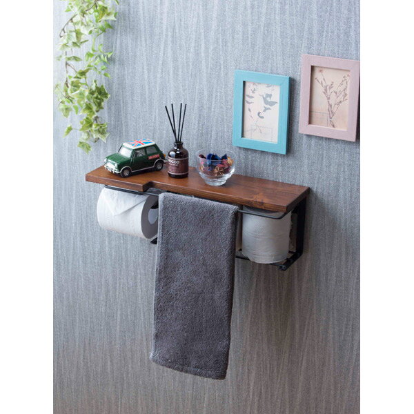 サン・ハーベスト:トイレットペーパーホルダー ストックタイプ ダークブラウン SIN-30DBR【メーカー直送品】【地域制限有】 トイレ トイレ用品 トイレットペーパーホルダー SIN-30DBR 棚付き 2連 ダブル 木製 ツイン アイアン おしゃれ