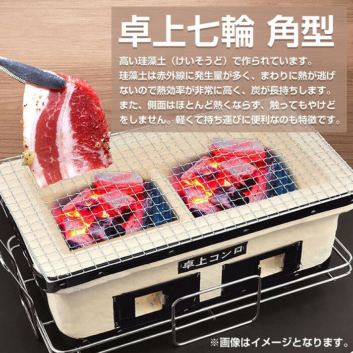 スタンド付き七輪 卓上 コンパクトサイズ 角型 【バーベキューコンロ 炭火 七厘 しちりん シチリン 珪藻土 BBQコンロ アウトドア レジャー 焼肉 お酒 炭火焼 小型】
