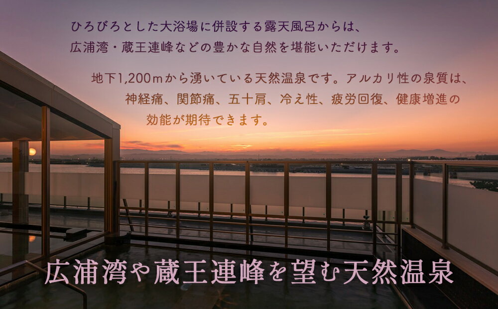 【広浦湾や蔵王連峰を望む天然温泉】 ひろびろとした大浴場に併設する露天風呂からは、広浦湾・蔵王連峰などの豊かな自然を堪能いただけます。