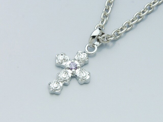 5個のローズとカットストーンで形成されたプチクロスネックレス。